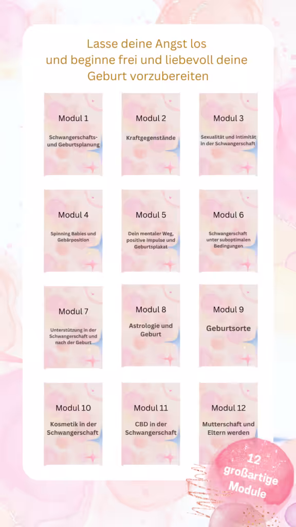 Jedes Modul ist dabei einem anderen Schwerpunkt gewidmet. So kannst du dich individuell auf deine Schwangerschaft und Geburt vorbereiten.