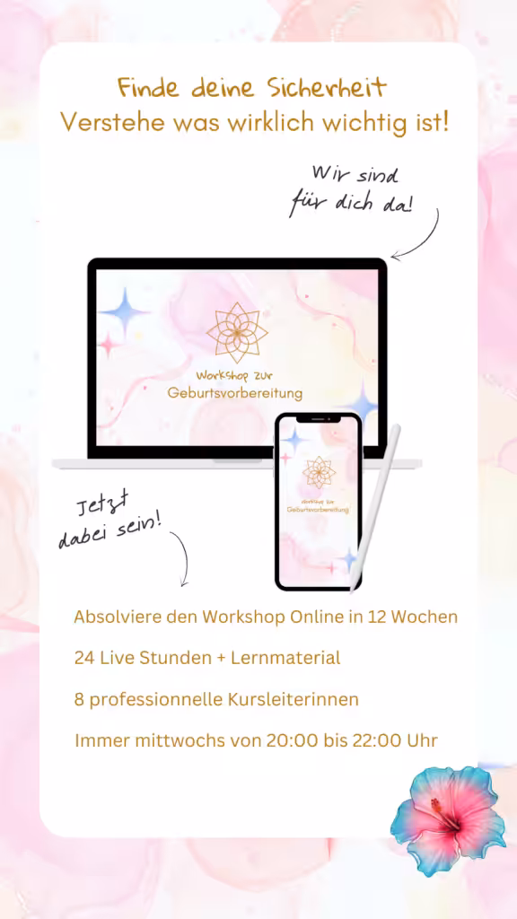 Der 12-wöchige Online-Workshops der Workshop zur Geburtsvorbereitung der via Live-Zoom stattfindet. Findest du kulturübergreifend alternatives Wissen, das dich klar und bewusst auf deine Geburtsreise vorbereitet.