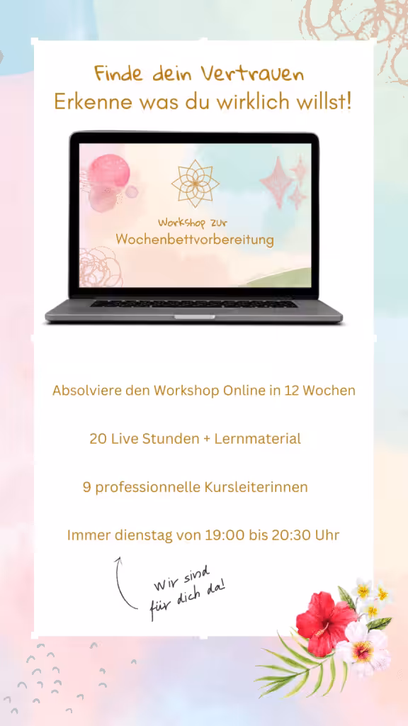 Der 12-wöchige Online-Workshop zur Wochenbettvorbereitung findet live via Zoom statt. Das vergessene und alternative Wochenbett-Wissen unterstützt dich dabei, Geborgenheit für dich selbst, dein Baby und deine ganze Familie zu leben. Damit du voller Energie in dein Mutterglück starten kannst.